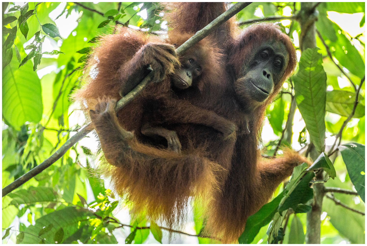 Orang Utan Weibchen mit Jungtier, Sumatra